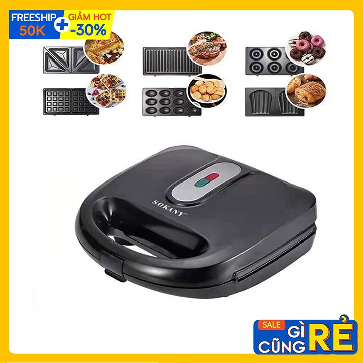Máy làm kẹp nướng bánh mỳ đa năng 6 khuôn Bánh Takoyaki, Waffle, Sandwich, Donut, Bánh Trứng Gà Nướng Sokany