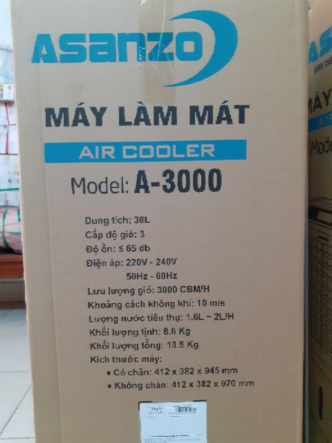 [Mã 44ELSALE2 giảm 7% đơn 300K] Máy Làm Mát Asanzo (Mode: A3000) Giảm 370K