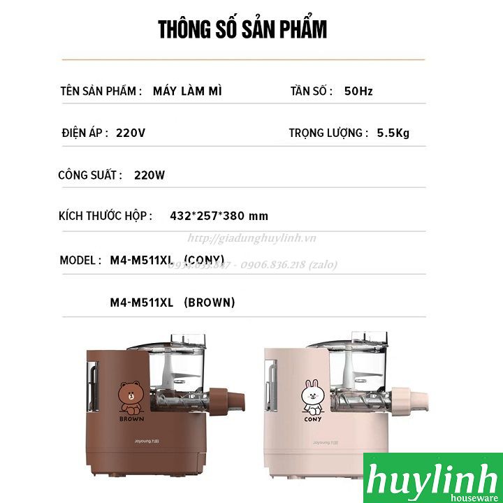 Thiết Bị Điện Gia Dụng > Đồ gia dụng nhà bếp > Dụng cụ nấu đặc biệt > Máy làm bánh mì || [Mã 44ELSALE1 giảm 5% đơn 3TR] Máy làm mì sợi tự động Joyoung Line M4-M511XL [Brown x Cony]Còn hàng