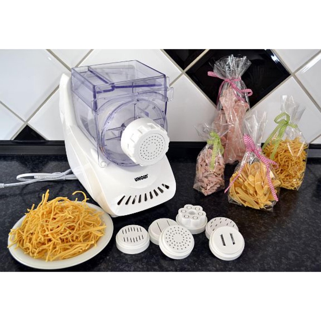 8 phụ kiện đi kèm theo của Máy làm mì tự động Unold sẽ giúp bạn sản xuất nhiều loại mì ống khác nhau: spritz, pappardelle, linguine, fettuccine, spaghetti, tagliatelle, aromaatoni, xúc xích. Đây chắc hẳn sẽ là máy làm mì spaghetti chuẩn nhất mà bạn từng biết. Không chỉ cung cấp các biến thể mì ống, nó còn có thể hỗ trợ làm bánh ngọt ép hoặc xúc xích tự làm có hình dạng hoàn hảo.