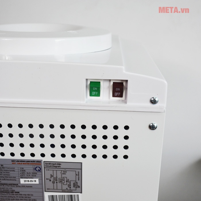 Máy làm nóng lạnh nước Kangaroo KG31A2 được thiết kế tiện dụng, dễ dùng với 2 vòi riêng biệt nóng, lạnh, được phân biệt bởi 2 màu đỏ và xanh riêng biệt, để dễ dàng nhận biết nhu cầu sử dụng nước lạnh hay nước nóng một cách dễ dàng. Với thiết kế nhỏ gọn thanh lịch cùng với kiểu dáng bắt mắt với hoa văn in nhẹ nhàng là một điểm nhấn giúp cho căn phòng của bạn thêm sang trọng, tinh tế.