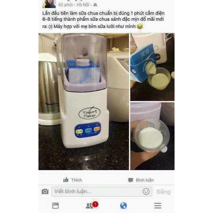 Cách sử dụng : trộn 1 hộp sữa chua vào hộp sữa tươi 1lít, trộn đều lên, rồi bỏ hộp sữa tươi vào máy, tầm 8 đên 10h sẽ có 1l sữa chua ăn ạ. Ngon lắm, có 2 chế độ: sữa chua uống và sữa chua đặc
