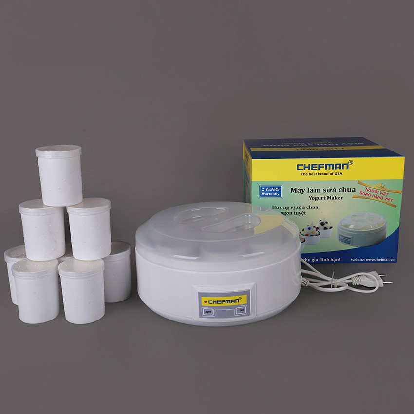 Máy Làm Sữa Chua 8 Cốc Nhựa Tặng Kèm 8 Cốc Nhựa Chefman CM-301N- Máy làm sữa chua Chefman CM-301N với thiết kế hiện đại, kiểu dáng nhỏ gọn, đơn giản nhưng không đơn điệu và trọng lượng nhẹ, máy làm sữa chua CM-301N rất dễ dàng vận chuyển và vệ sinh, bảo quản tuyệt đối an toàn cho sức khỏe đã xóa tan đi mọi lo lắng của chị em khi lựa chọn máy làm sữa chua cho gia đình, để gia đình mình được thưởng thức những cốc sữa chua ngon tuyệt với những hương vị độc đáo.