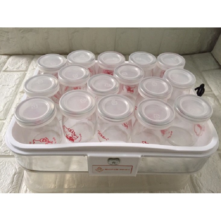 Bộ sản phẩm gồm 1 máy làm sữa chua + 12 hũ đựng sữa chua (có loại nhựa và thủy tinh)
