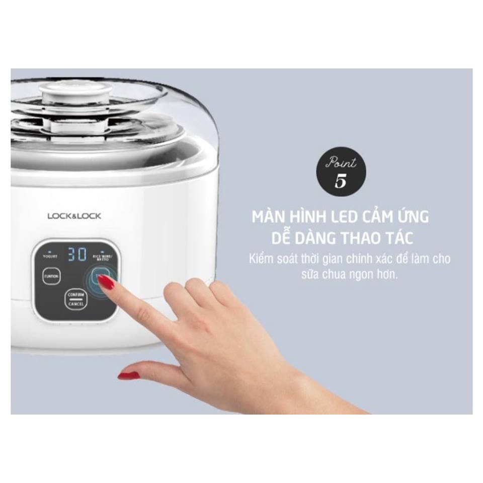 🍶 Máy làm sữa chua Lock&Lock EJY211 còn được trang bị màn hình LED cảm ứng cho bạn dễ dàng thao tác, kiểm soát thời gian chính xác để làm cho sữa chua ngon hơn.