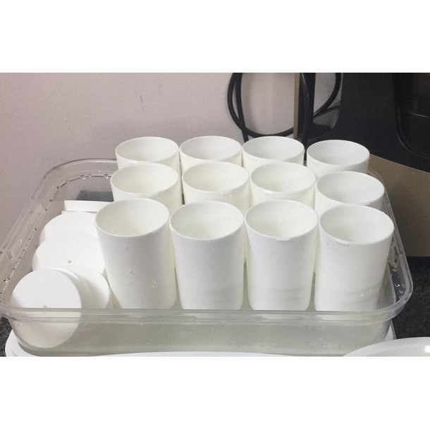 - Cho hỗn hợp vào các cốc có trong máy, tùy độ chua bạn mong muốn có thể ủ từ 5 - 6 tiếng cho mùa hè , từ 7 - 8 tiếng cho mùa đông (tính từ thời gian cắm điện).