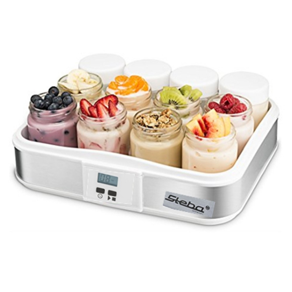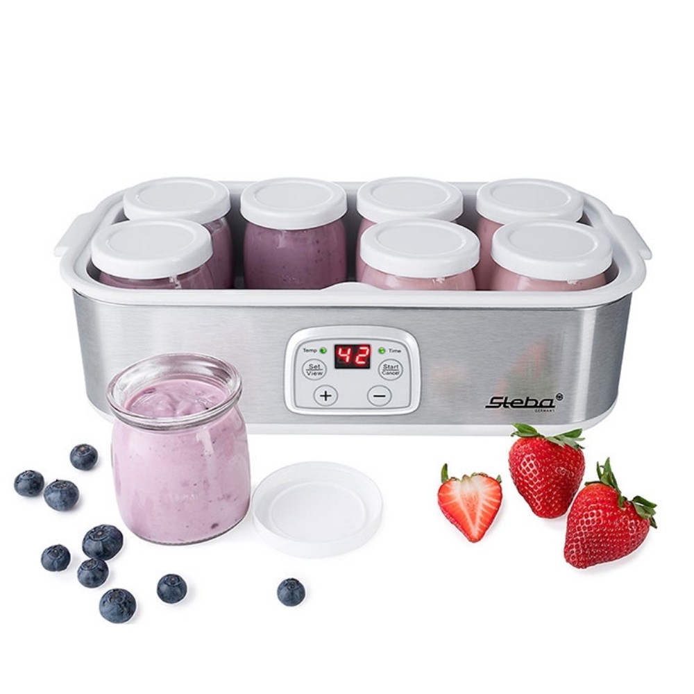 - Thân máy bằng nhựa nguyên sinh được bao quanh bởi thép không gỉ bền chắc, các tính năng hiện đại (hẹn giờ, bảo vệ quá nhiệt). Hiện nay đại đa số các máy làm sữa chua khác không có chế độ hẹn giờ và bảo vệ quá nhiệt (cái nào có thì lại quá đắt), dẫn đến việc bạn phải tự canh thời gian để tắt máy và nhiệt độ nuôi cấy vi khuẩn đôi khi quá cao (có thể làm chết men) gây bất tiện trong quá trình sử dụng. Máy làm sữa chua Steba khắc phục hoàn toàn được điểm bất tiện này, với thời gian hẹn giờ từ 1-17 tiếng.