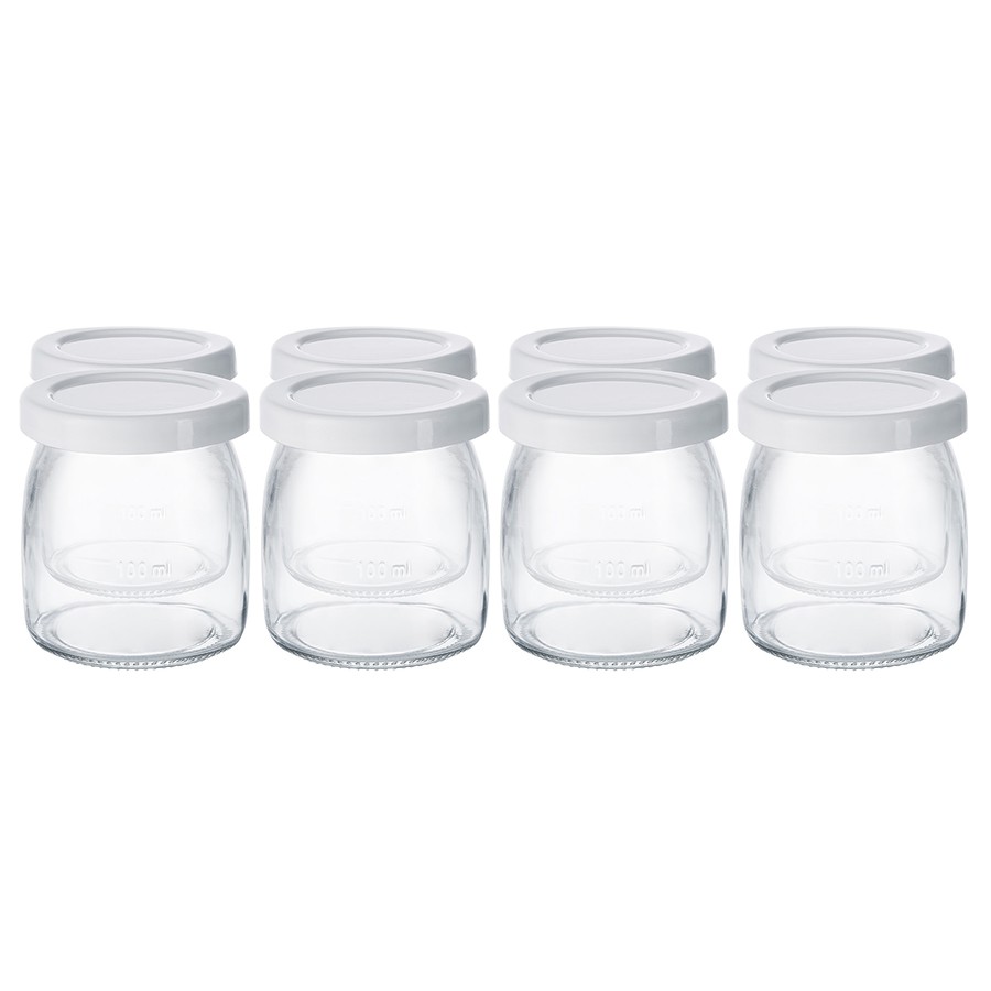 -Máy làm sữa chua Steba JM3 trang bị 8 cốc thủy tinh trong suốt, mỗi cốc 180ml giúp bạn chuẩn bị món tráng miệng mát lạnh, bổ dưỡng cho cả gia đình.