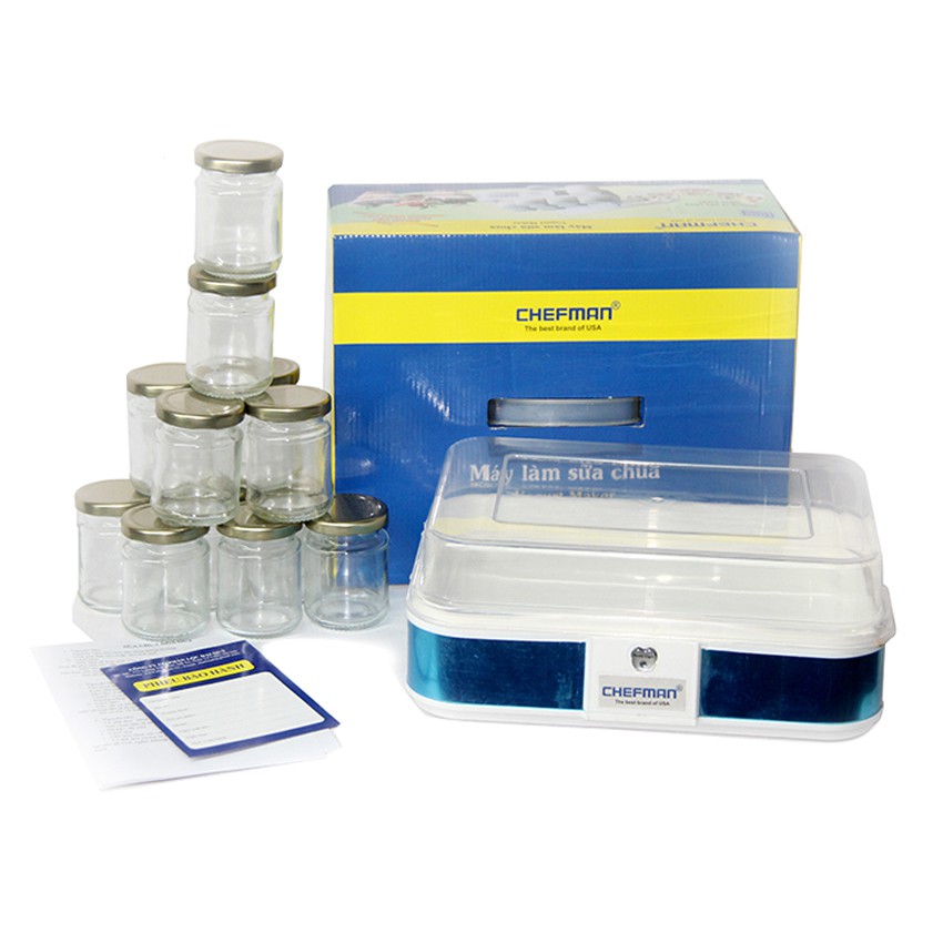 Máy Làm Sữa Chua 12 Cốc Thủy Tinh Chefman CM-311T- Máy làm sữa chua có rất nhiều loại tùy vào số lượng thành viên trong gia đình bạn lựa chọn sản phẩm cho phù hợp. Có loại 6 cốc, 8 cốc và 12 cốc bạn lựa chọn. Máy làm sữa chua được chia làm 2 bộ phận chính: thân máy và cốc đựng. Thân máy tạo lượng nhiệt từ 42 – 45 độ thích hợp cho quá trình lên men sữa bò thành sữa chua. Cốc đựng có thể được làm bằng nhựa chịu nhiệt hay làm bằng thủy tinh cao cấp chống dính, chống bám cao.