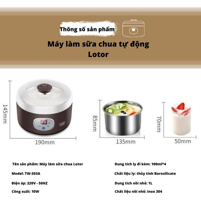 Máy Làm Sữa Chua Tự Động Ba Cấp Độ Chính Hãng LOTOR – Dung Tích 1L - BH 6 Tháng – Lotor L029✅ THÔNG SỐ SẢN PHẨM