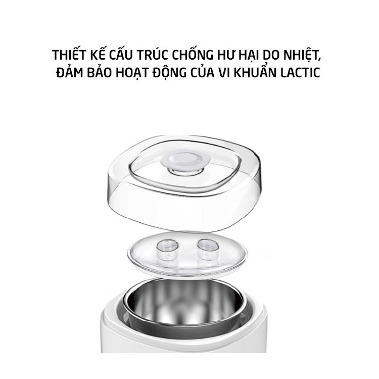 • Máy được thiết lập và duy trì nhiệt độ tự động để đảm bảo sự hoạt động của các vi khuẩn lactic. Ngoài ra, với hệ thống đèn Led đặc biệt cảm ứng nhiệt giúp bạn nhận biết khi nhiệt độ thay đổi