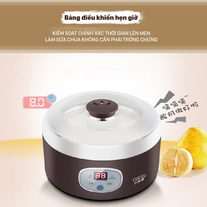 - Bảng điều khiển hẹn giờ kiểm soát chính xác thời gian lên men, khi hoàn thành, tiếng chuông sẽ nhắc nhở, không cần phải trông chừng
