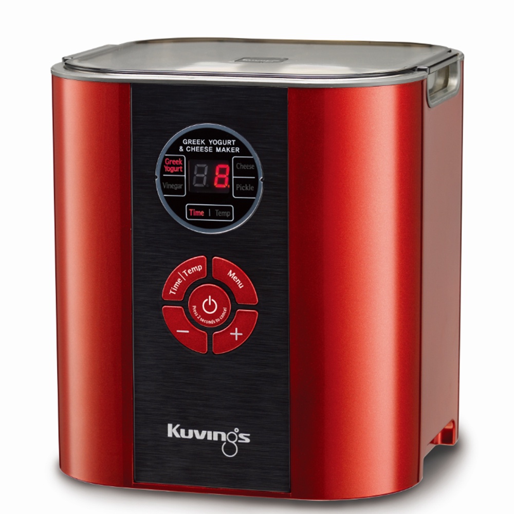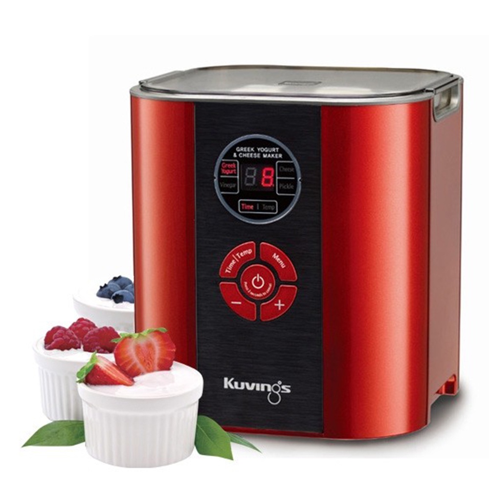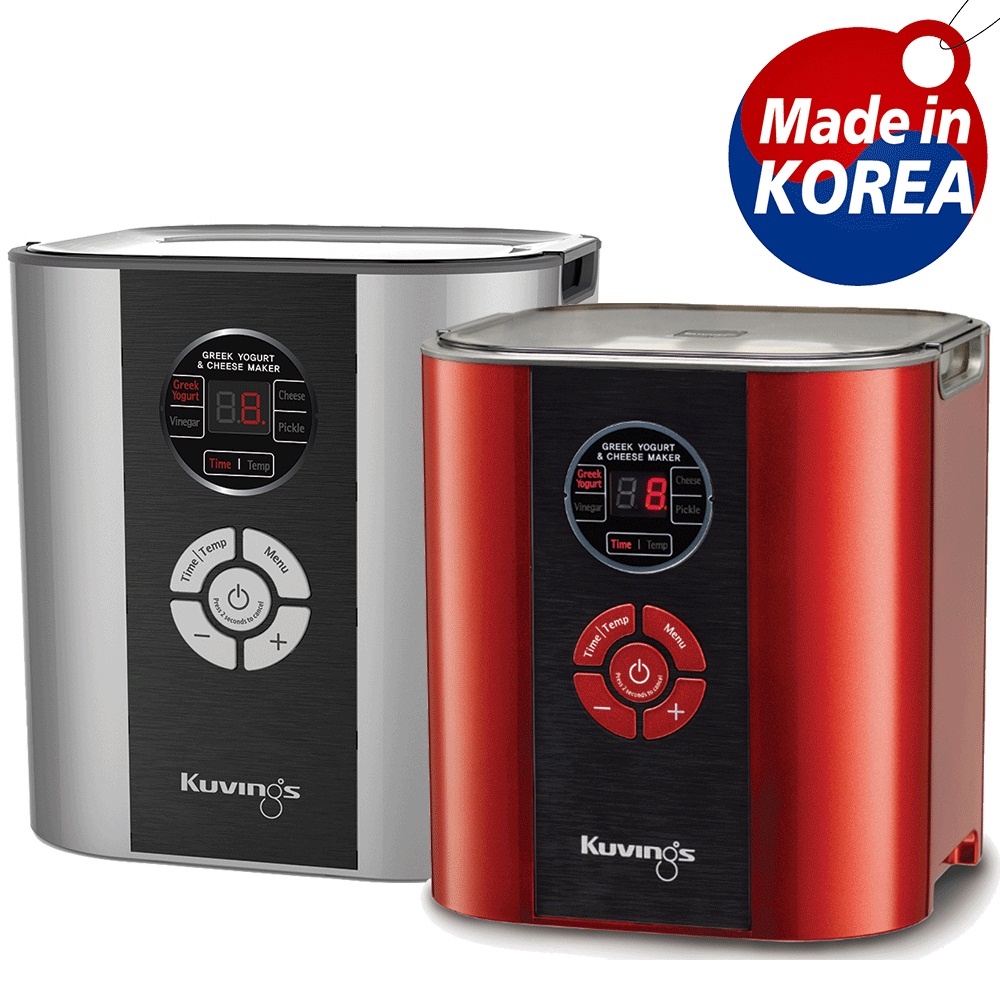 Máy làm sữa chua và pho mát 6 trong 1 hiệu Kuvings với chức năng làm sữa chua, làm pho mát, làm dấm-làm sirô, làm dưa muối, gồm 2 lồng ủ (lồng ủ này sử dụng được trong lò vi sóng nhưng không quá 2 phút), có màn hình hiển thị LCD, nhiệt độ thiết lập : 20º~65ºC, thời gian thiết lập : 1 giờ ~ 99 giờ, màu đỏ.Xuất xứ : Made In Korea