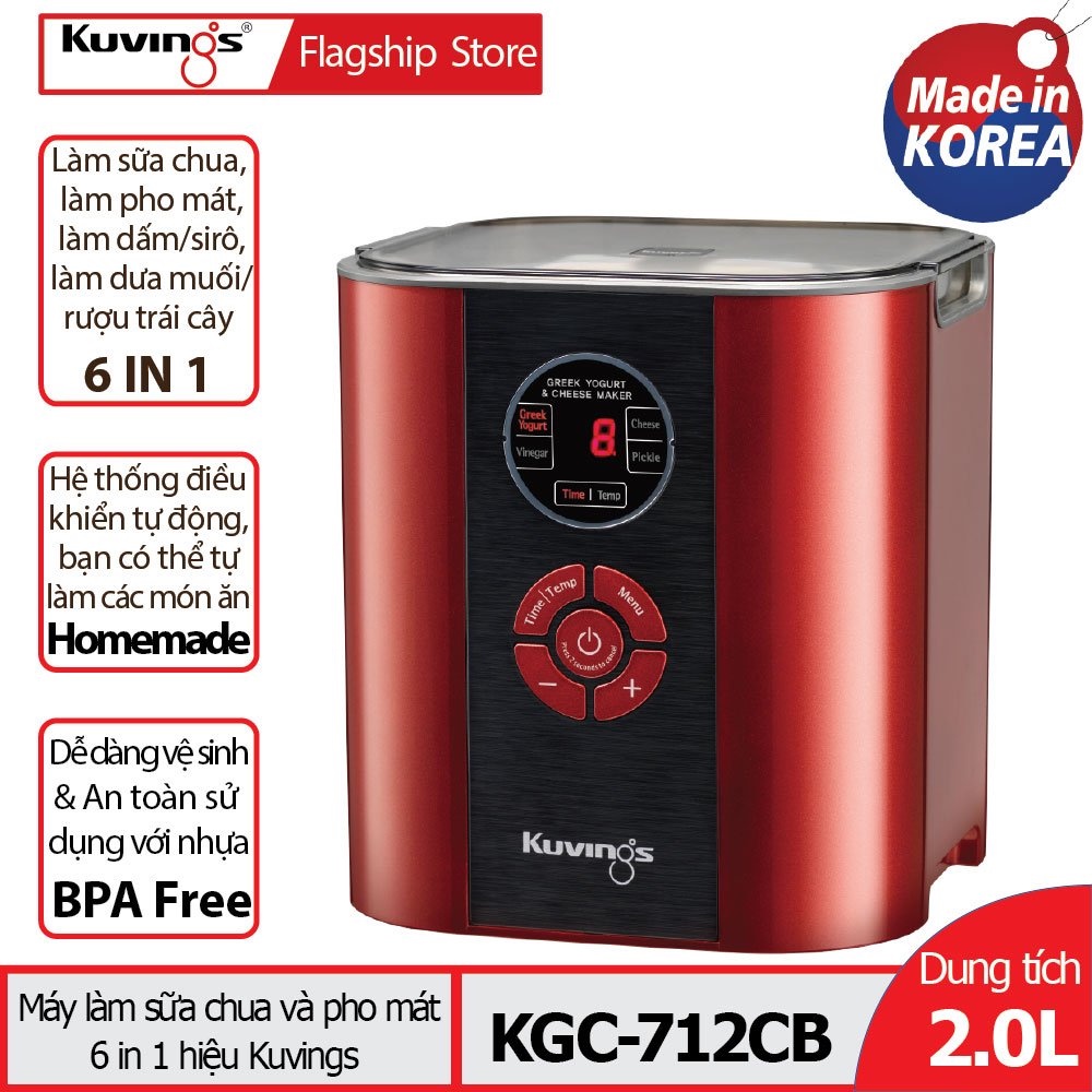 Giới thiệu [Mã BMBAU300 giảm 10% đơn 499K] Máy làm sữa chua và pho mát 6 trong 1 Kuvings KGC-712CB (2.0L) Màu đỏ - Hàng chính hãng