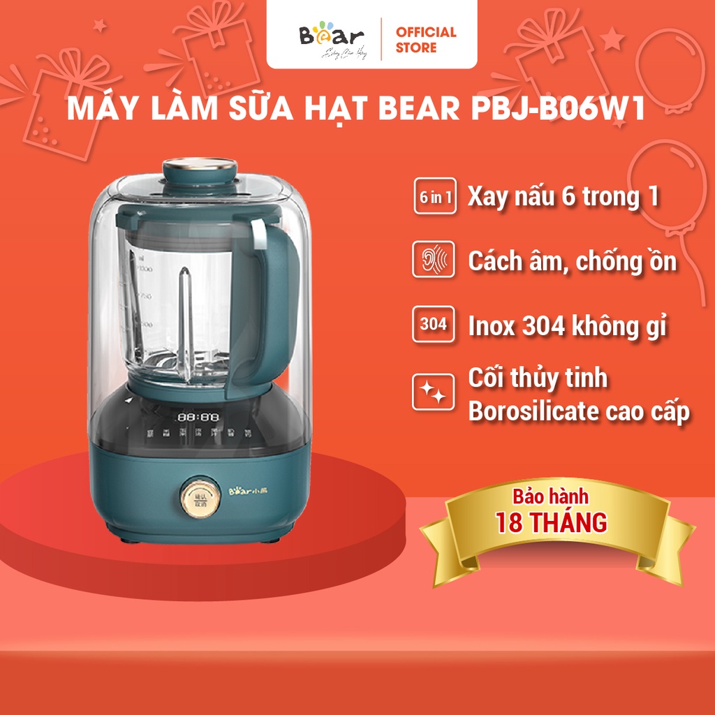 Thiết Bị Điện Gia Dụng > Đồ gia dụng nhà bếp > Máy ép, Xay sinh tố & Máy làm sữa đậu nành || Máy Làm Sữa Hạt Bear Công Nghệ Chống Ồn Cao Cấp Xay, Nấu Sữa Hạt Tiện Lợi - B06W1Còn hàng