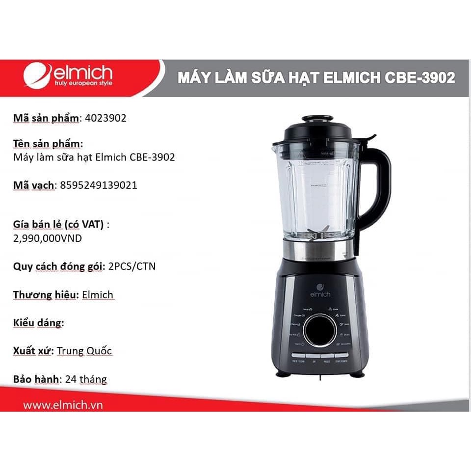 Thiết Bị Điện Gia Dụng > Đồ gia dụng nhà bếp > Máy ép, Xay sinh tố & Máy làm sữa đậu nành || Máy Làm Sữa Hạt Cao Cấp ELMICH CBE-3902 (Dung Tích Cối Xay 2000ml - Công Suất 1800w) Hàng Chính HãngCòn hàng