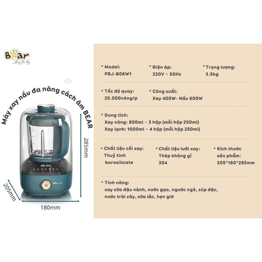 Thương hiệu: Bear | Xem thêm các sản phẩm Máy xay sinh tố của BearMô tả ngắn