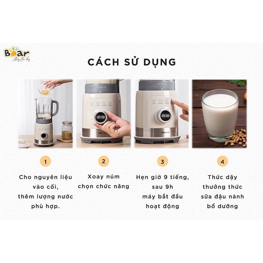 Máy làm sữa hạt đa năng Bear PBJ-B10U5 làm sữa đậu nành, xay sinh tố, dung tích 1.5l, 8 chế độ chức năng - L02112214*** THÔNG TIN SẢN PHẨM***