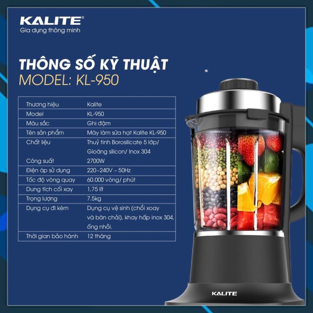 Máy làm sữa hạt đa năng Kalite KL 950, công suất 2700W, 1,75L, nắp cảm biến chống trào- Chính hãng bảo 12 thángTHÔNG SỐ KỸ THUẬT