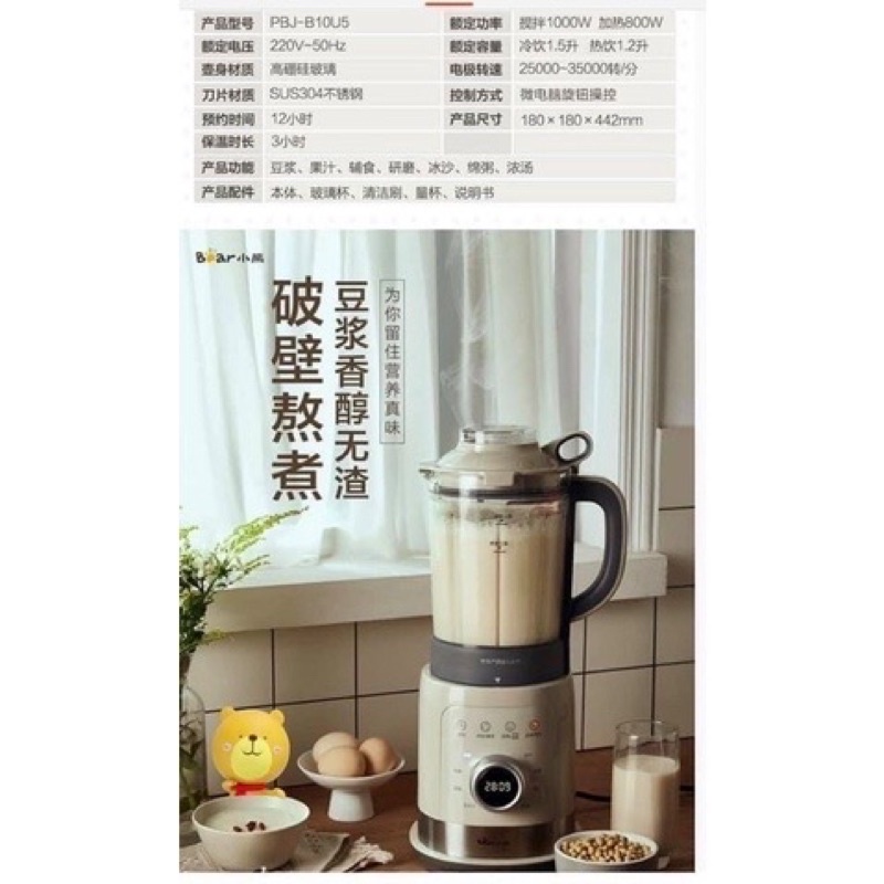 Tên sản phẩm Máy Làm Sữa Hạt Bear PBJ-B10U5 1.5L