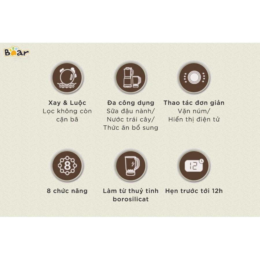 Máy Làm Sữa Hạt Đa Năng - Sữa Đậu Nành - Xay Sinh Tố - Bear PBJ-B10U5 1,5L- 8 Chế Độ Chức Năng