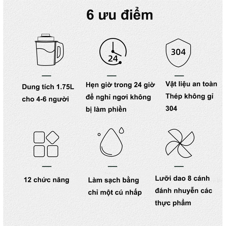 Máy Làm Sữa Hạt Đa Năng Thủy Tinh -Xay Sinh Tố 1,75L-12 Chế Độ Có Thể Hâm Nóng, Bảo hành 12 tháng