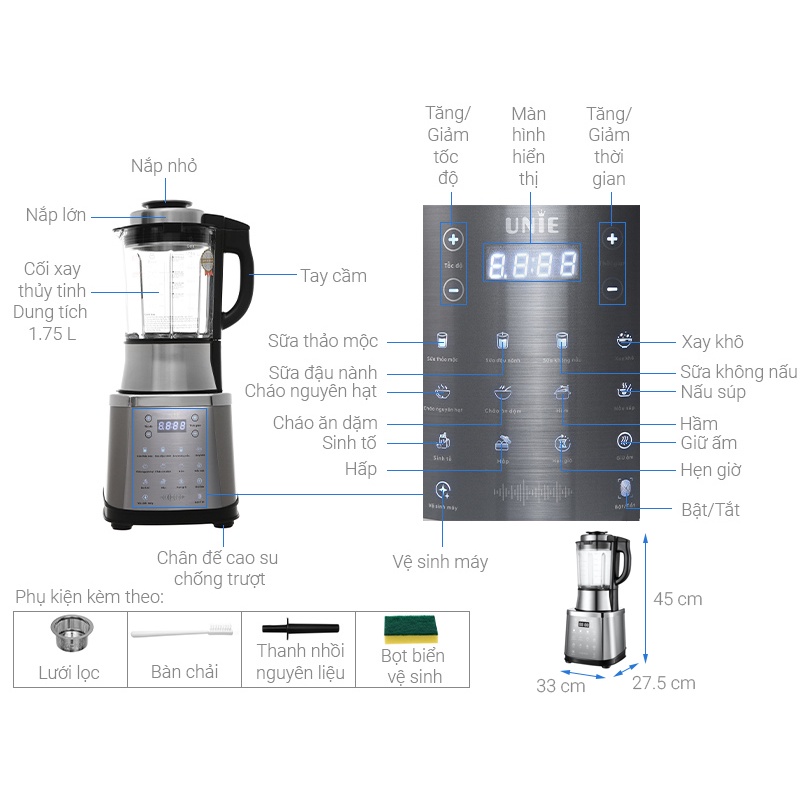 Thiết Bị Điện Gia Dụng > Đồ gia dụng nhà bếp > Máy trộn thực phẩm || Máy làm sữa hạt đa năng Unie V8S - Công suất 1800W, dung tích 1.75L, thông báo bằng giọng nói - Hàng chính hãngCòn hàng