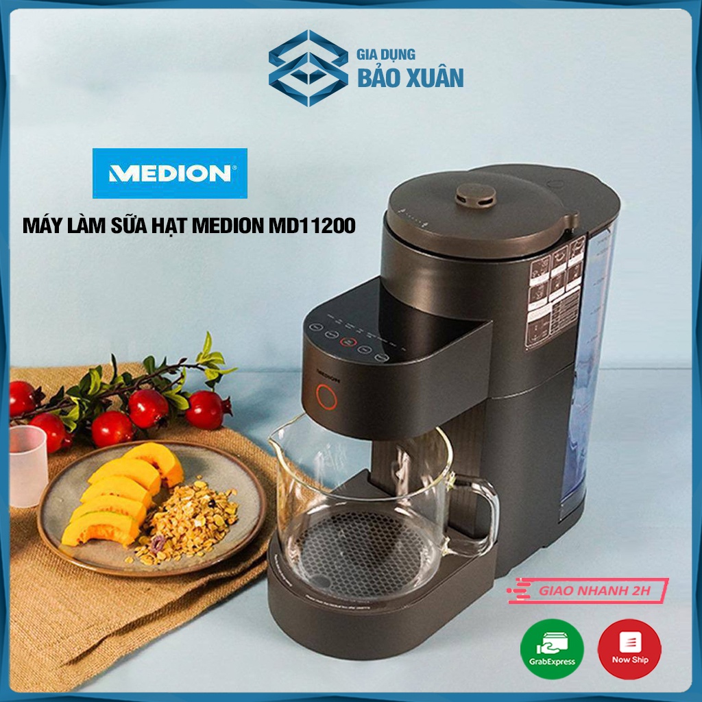 MÁY LÀM SỮA HẠT MEDION MD11200 – MẪU MỚI T9/2021Máy tích hợp 8 chương trình tự động và linh hoạt: Ngũ cốc (đậu đen, đậu gà, đậu xanh, gạo lứt...), hạt đậu nành khô, hạt đậu đã ngâm nước, sữa yến mạch, sữa hạnh nhân, sinh tố, vệ sinh, sấy khô.