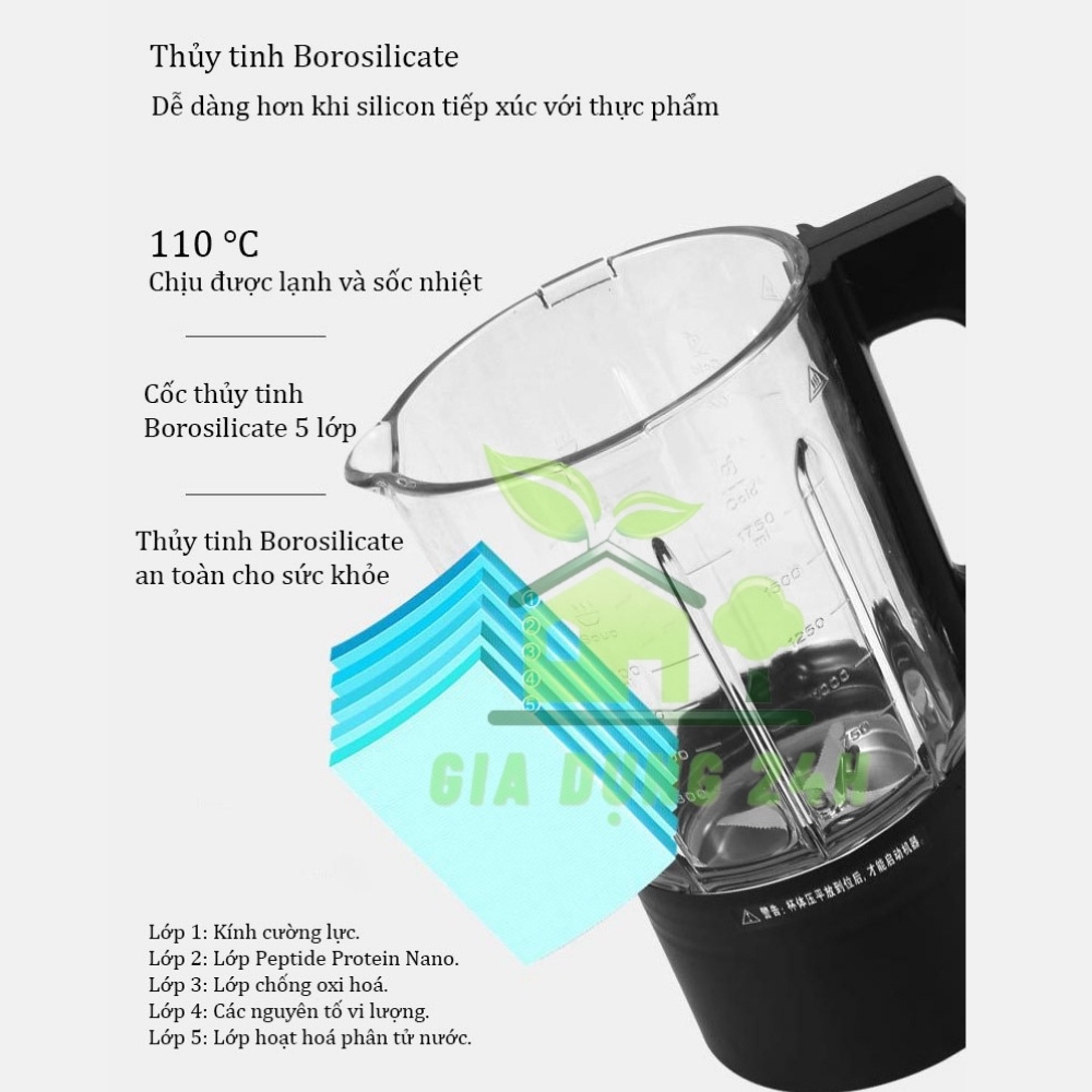 ✔️ Máy làm sữa hạt, nồi nấu đa năng, máy xay sinh tố có CỐI được làm bằng THUỶ TINH BOROSILICATE dày 8mm, chịu nhiệt lên đến 300°C, chiu lực tốt.