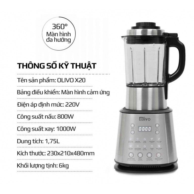 Máy Làm Sữa Hạt OLIVO X20 1800W Chính hãng - BH 24 tháng Máy Xay Sinh Tố, Làm Sữa Hạt Siêu Mịn Thương Hiệu Mỹ
