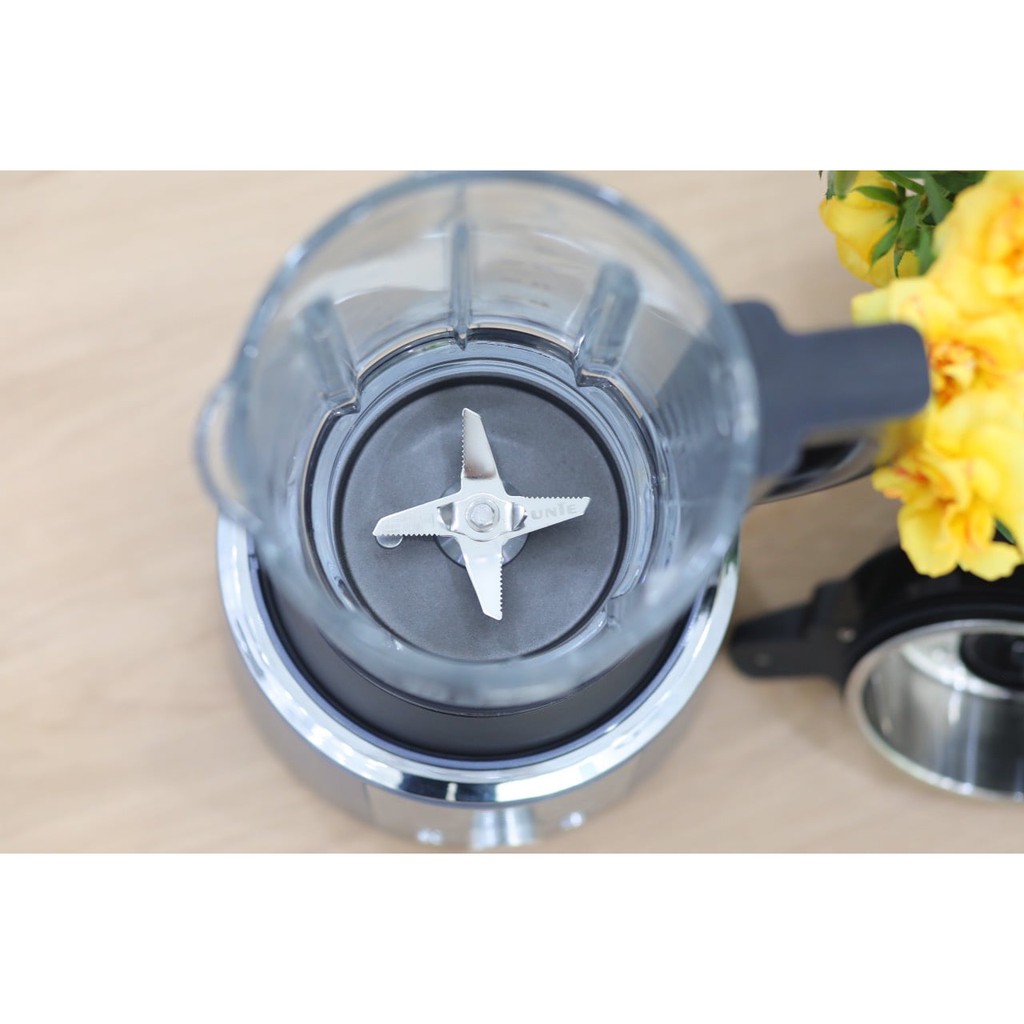 - Lưỡi xay của máy có 8 dao lưỡi kép được làm từ vật liệu Inox 304 vô cùng sắc bén, đảm bảo xay nhuyễn mọi loại thực phẩm cứng đầu nhất
