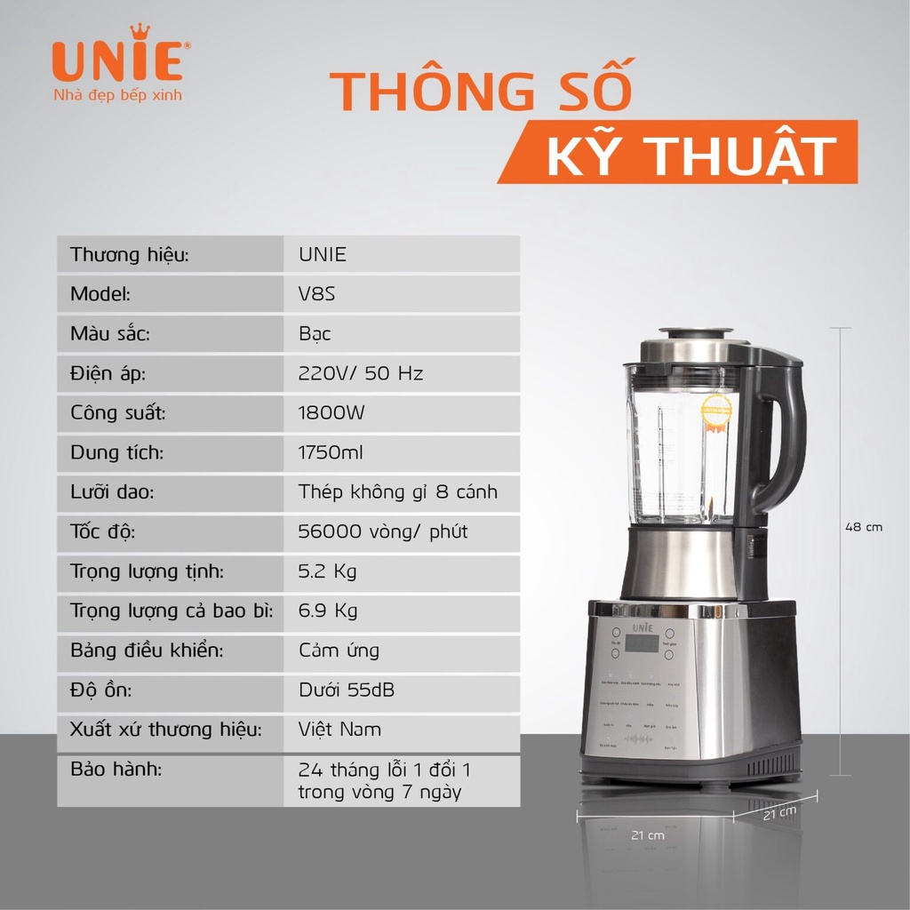 Giới thiệu [Mã ELHAMS5 giảm 6% đơn 300K] Máy Làm Sữa Hạt Unie V8S - 1.75Lit 1800W - Xay Nấu Đa Năng - Bảo Hành Chính Hãng 2 Năm