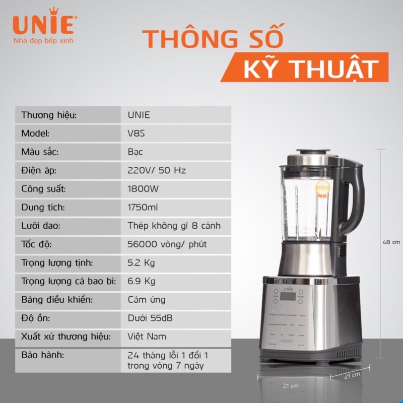 MÁY LÀM SỮA HẠT UNIE V8S MÁY SAY NẤU ĐA NĂNG INOX 304 CAO CẤP 1800W