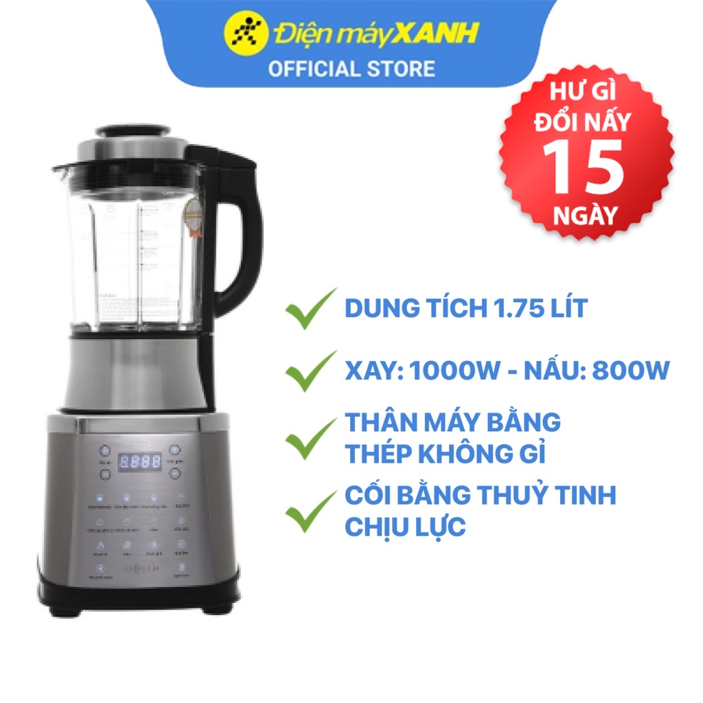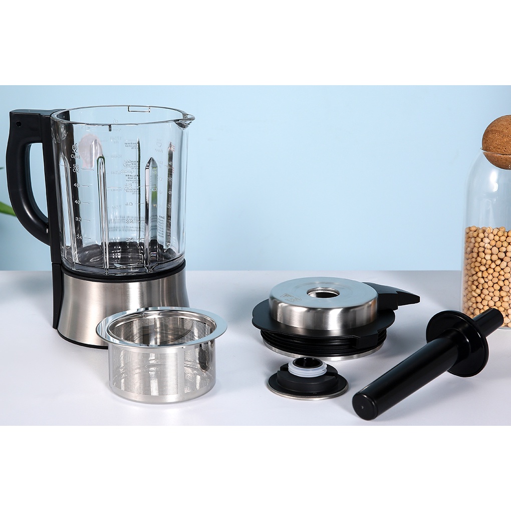 ● Máy làm sữa hạt có cối xay dung tích 1.75 lít chất liệu thủy tinh dày dặn, chắc chắn nhờ cấu tạo 5 lớp, chịu lực và chịu nhiệt cao đến 300 độ C.