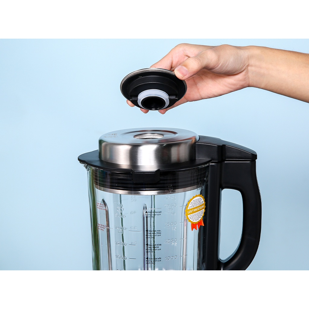 Chỉ khi cối xay được đóng nắp và lắp ráp đúng vị trí thì máy mới hoạt động, đảm bảo an toàn cho người dùng và bảo vệ tốt cho thiết bị, tăng tuổi thọ máy. Ngoài ra nắp cối còn làm bằng inox 304 đảm bảo an toàn trong vệ sinh thực phẩm, chống gỉ sét và đặc biệt có khả năng chống trào, giúp thực phẩm k bị tràn ra ngoài trong quá trình nấu.
