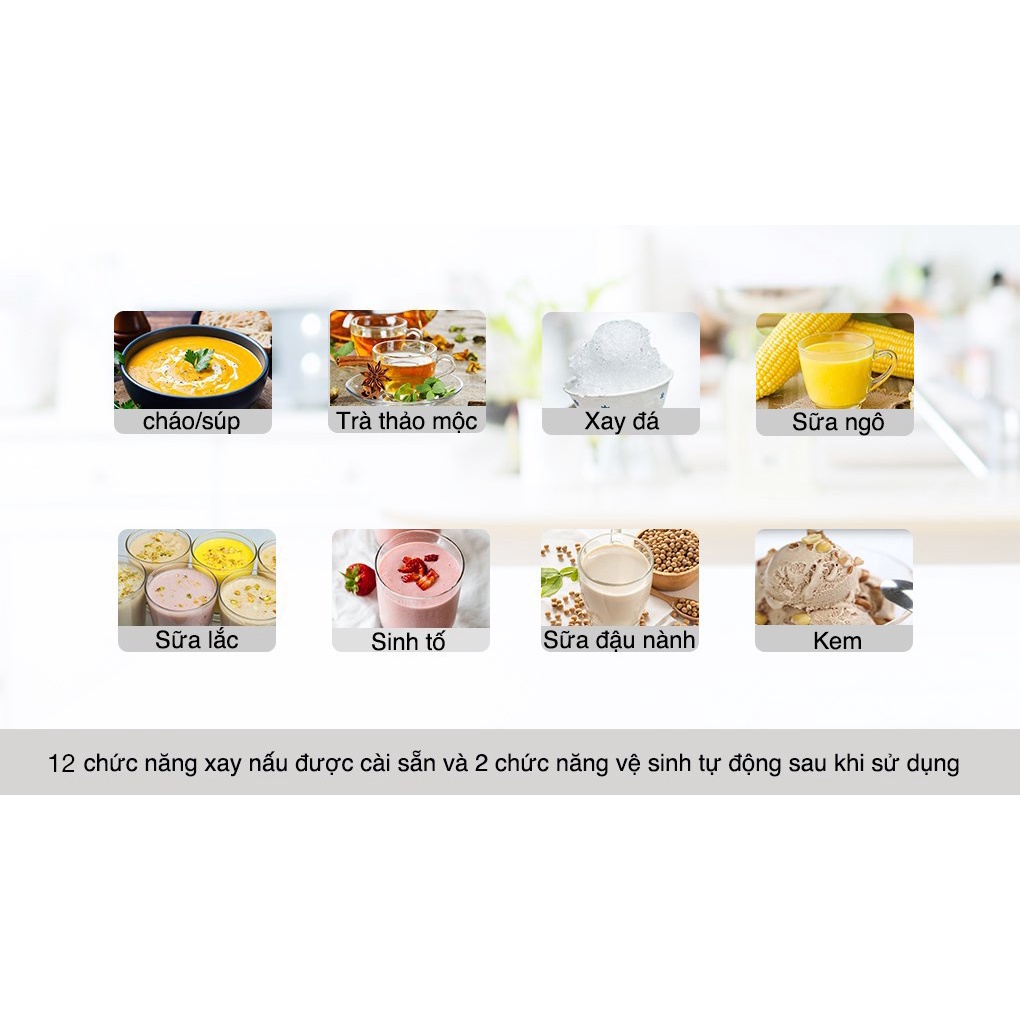 ✅8 chức năng nấu, xay tự động gồm: sữa bắp, sữa đậu nành, súp nóng, trà thảo mộc, sinh tố, sữa lắc, kem, xay đá ngoài ra còn có thức ăn pha trộn thủ công, xay nhồi giúp bạn chuẩn bị các món ăn, đồ uống thuận tiện, phục vụ tốt cho nhu cầu hằng ngày của gia đình.