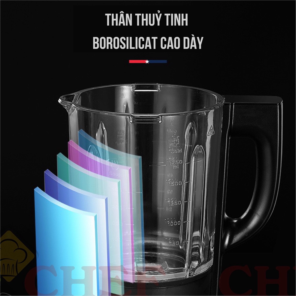 💖💖Cối thủy tinh của Máy làm sữa hạt CHEF&CHEF CH90 được làm bằng chất liệu thủy tinh 5 lớp, rất dày có thể chịu được lực xay với cường độ lớn, độ va đập thực phẩm vào thành thủy tinh khi xay và nhiệt độ cao khi máy tự đun nóng.