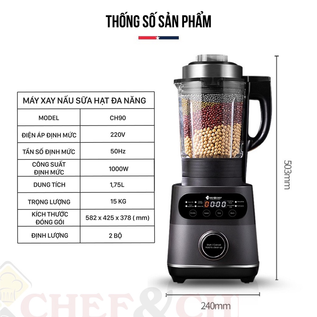 MÁY LÀM SỮA HẠT XAY NẤU TỰ ĐỘNG CHEF&CHEF CH90 TÍNH NĂNG VƯỢT TRỘI------