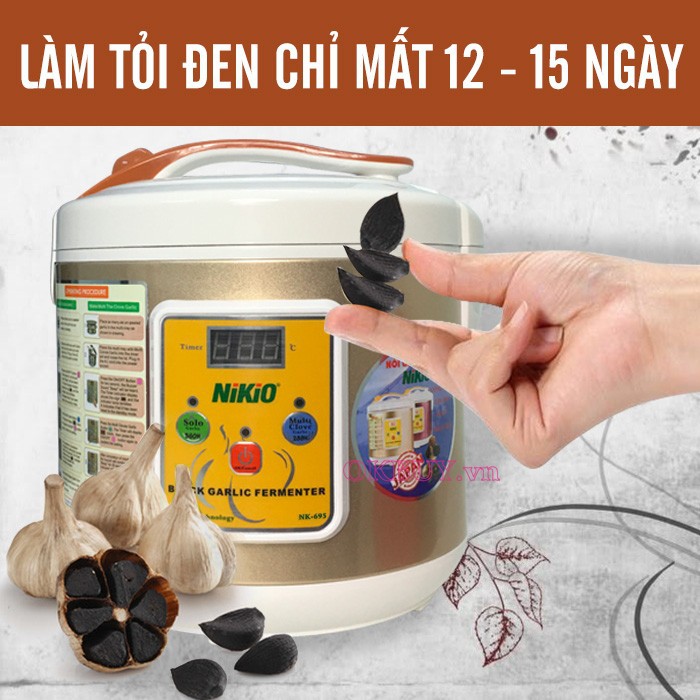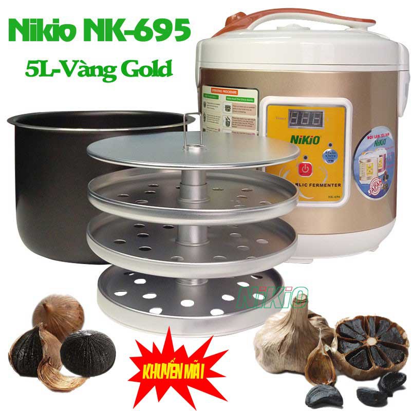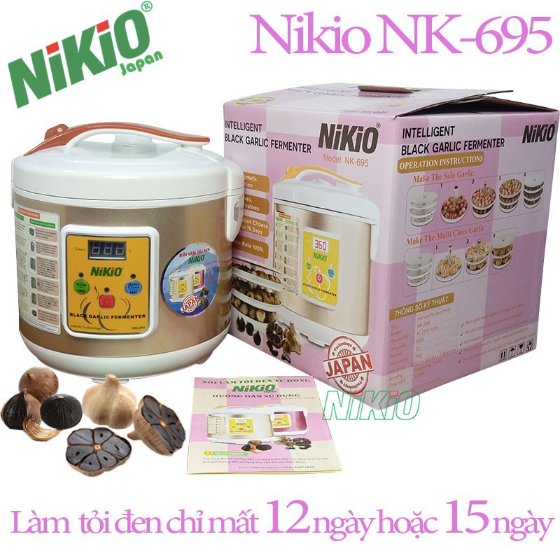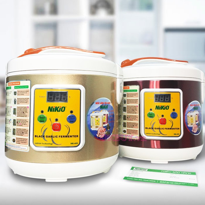 Nồi làm tỏi đen gia đình trở thành lựa chọn tối ưu nhất cho người tiêu dùng. Trên thị trường chỉ có vài thương hiệu điện sản xuất máy làm tỏi đen vì với dòng máy này rất khó, vì phải đảm bảo kỹ thuật và công nghệ cao mới đáp ứng được, trong đó nổi bật nhất là nồi (máy) làm tỏi đen Nhật Bản Nikio NK-695 dòng 5 lít, có 2 màu Vàng Gold và Đỏ Tím. Nồi cho phép làm tỏi đen tại nhà dễ dàng, đơn giản và tiết kiệm, nồi mang lại hiệu quả cao với chất lượng tỏi đúng chuẩn tỏi đen Nhật Bản trên thị trường, nhưng lại tiết kiệm được chi phí đáng kể cho người dùng. Máy làm tỏi đen chính hãng Nikio NK-695 được nhiều người tin dùng bởi chất lượng sản phẩm và tỷ lệ lên men thành công cao, công nghệ lên men và ủ tỏi theo công nghệ tiên tiến từ Nhật Bản, mang đến sự hài lòng tuyệt đối cho người dùng. Chỉ với 1 chiếc Nồi làm tỏi đen gia đình này bạn sẽ có những củ tỏi đen thơm nồng, dẻo ngọt và nhiều chất dinh dưỡng. Giúp bồi bỗ sức khỏe và phòng ngừa một số bệnh nguy hiểm tìm ẩn trong cơ thể bạn. Sản phẩm được mệnh danh là "Vũ Khí" bảo vệ sức khỏe cho gia đình Bạn