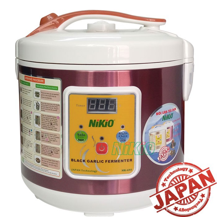 Nồi làm tỏi đen gia đình trở thành lựa chọn tối ưu nhất cho người tiêu dùng. Trên thị trường chỉ có vài thương hiệu điện sản xuất máy làm tỏi đen vì với dòng máy này rất khó, vì phải đảm bảo kỹ thuật và công nghệ cao mới đáp ứng được, trong đó nổi bật nhất là nồi (máy) làm tỏi đen Nhật Bản Nikio NK-695 dòng 5 lít, có 2 màu Vàng Gold và Đỏ Tím. Nồi cho phép làm tỏi đen tại nhà dễ dàng, đơn giản và tiết kiệm, nồi mang lại hiệu quả cao với chất lượng tỏi đúng chuẩn tỏi đen Nhật Bản trên thị trường, nhưng lại tiết kiệm được chi phí đáng kể cho người dùng. Máy làm tỏi đen chính hãng Nikio NK-695 được nhiều người tin dùng bởi chất lượng sản phẩm và tỷ lệ lên men thành công cao, công nghệ lên men và ủ tỏi theo công nghệ tiên tiến từ Nhật Bản, mang đến sự hài lòng tuyệt đối cho người dùng. Chỉ với 1 chiếc Nồi làm tỏi đen gia đình này bạn sẽ có những củ tỏi đen thơm nồng, dẻo ngọt và nhiều chất dinh dưỡng. Giúp bồi bỗ sức khỏe và phòng ngừa một số bệnh nguy hiểm tìm ẩn trong cơ thể bạn. Sản phẩm được mệnh danh là "Vũ Khí" bảo vệ sức khỏe cho gia đình Bạn.