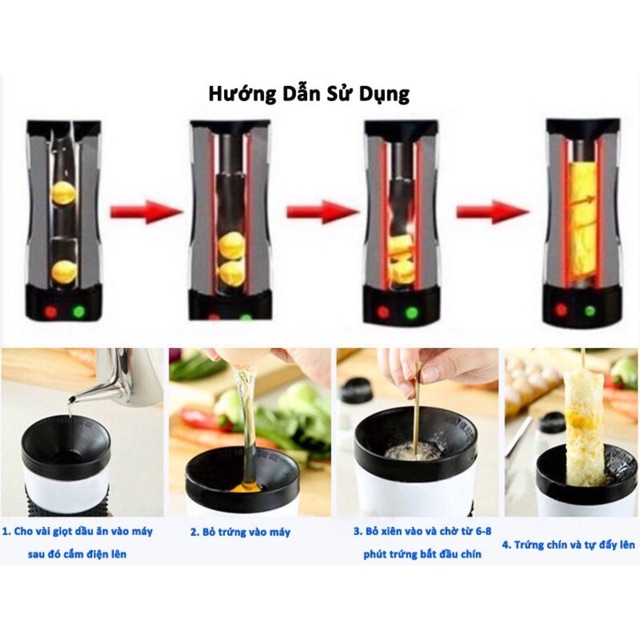 Bằng cách khai thác sức mạnh mới của Công nghệ Nấu ăn theo chiều dọc.Máy Làm Trứng Cuộn này tạo ra trứng chín một cách đều, thơm ngon , mềm và được làm chín một cách hoàn hảo . Và chỉ trong vài phút. Đơn giản chỉ cần cho buồng bên trong một spritz nhẹ dầu ăn, sau đó chỉ cần đập trứng ra và đổ vào bên trong khoang. Khi trứng đã chín, nó dần dần bắt đầu nổi lên trên, lúc này bạn nhìn nó sẽ giống như 1 cái xúc xích hoặc 1 cái kem vậy, thật thú vị đúng không nào