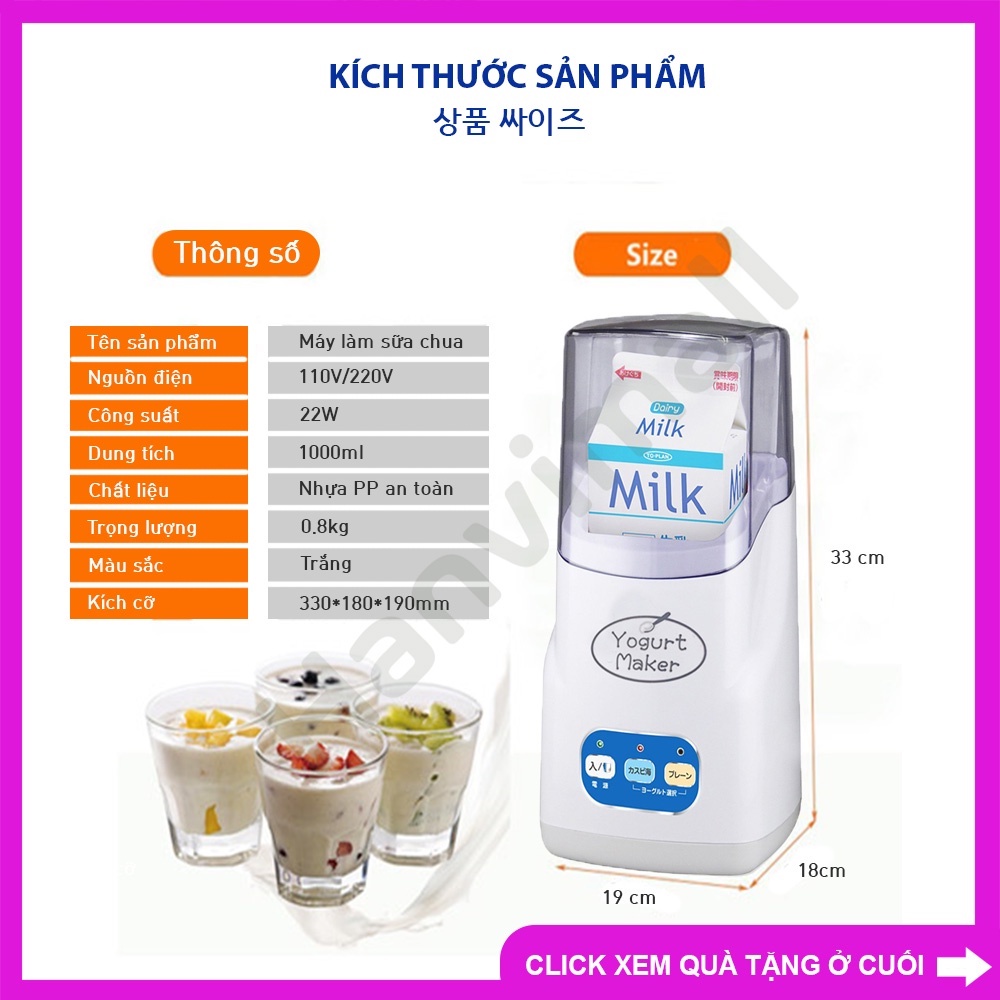 Bộ sản phẩm : 1 Máy làm sữa chua + ( quà tặng - số lượng có hạn : 1 bộ silicon bọc thực phẩm + 1 bịch 10 khẩu trang KF94 )