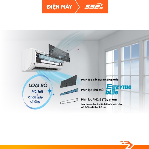 - Thanh lọc không khí, loại bỏ mùi hôi, nấm mốc với màng lọc Enzyme Blue và Mold Proof