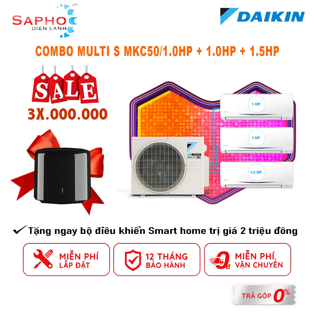 Thiết Bị Điện Gia Dụng > Thiết bị điện gia dụng lớn > Thiết bị làm mát > Điều hòa || Máy lạnh Daikin Multi S Combo MKC50/1.0HP+1.0HP+1.5HP Inverter Gas R32 Model 2021 Thái Lan Chính HãngCòn hàng