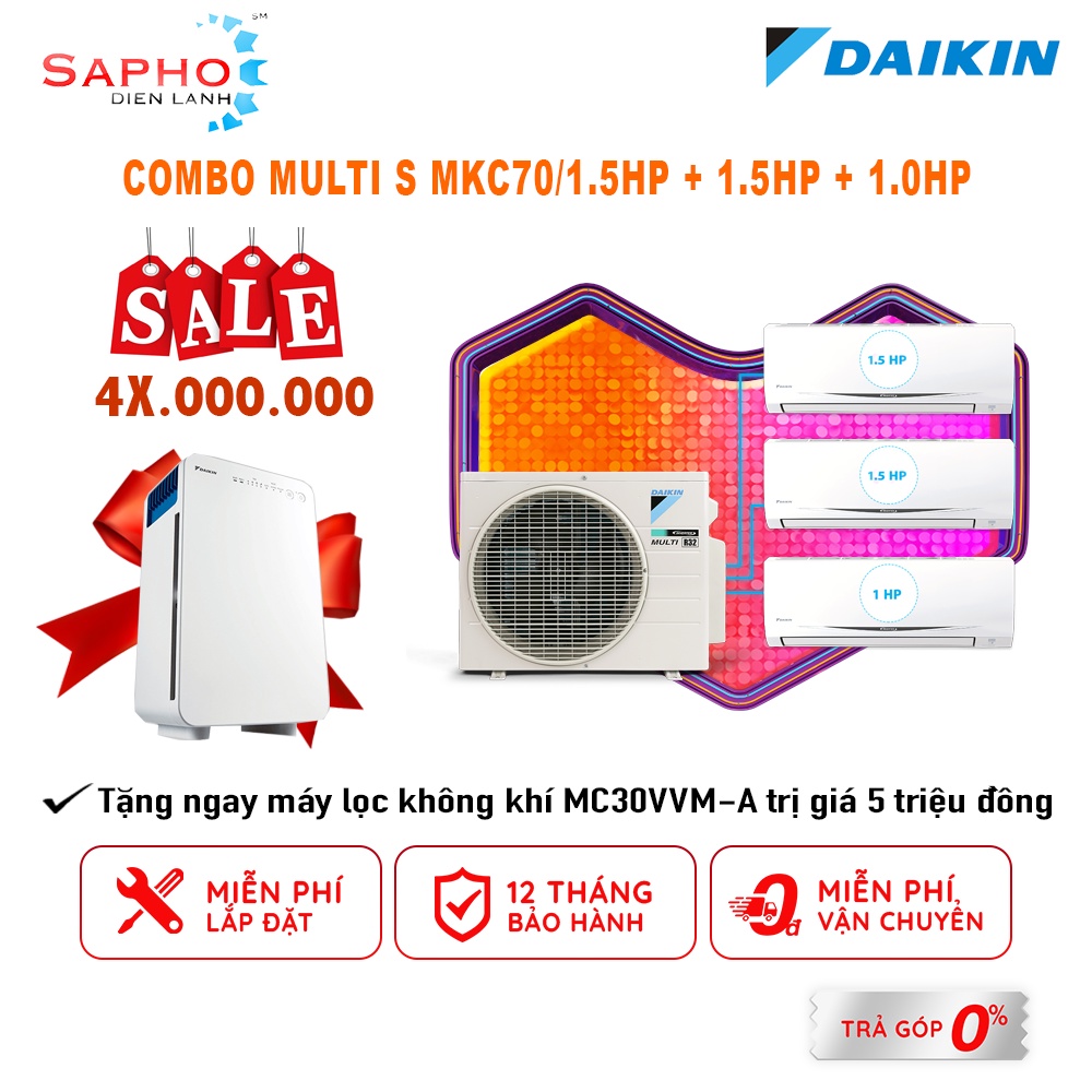 Thiết Bị Điện Gia Dụng > Thiết bị điện gia dụng lớn > Thiết bị làm mát > Điều hòa || Máy lạnh Daikin Multi S Combo MKC70/1.5HP+1.5HP+1.0HP Inverter Gas R32 Model 2021 Thái Lan Chính HãngCòn hàng