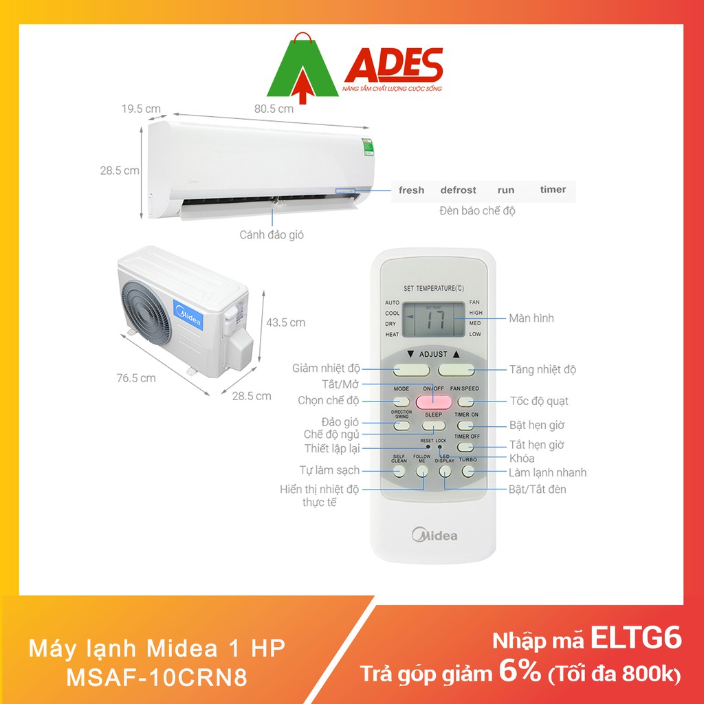 Giới thiệu [Mã 154ELSALE2 giảm 7% đơn 300K] Máy lạnh Midea 1 HP MSAF-10CRN8