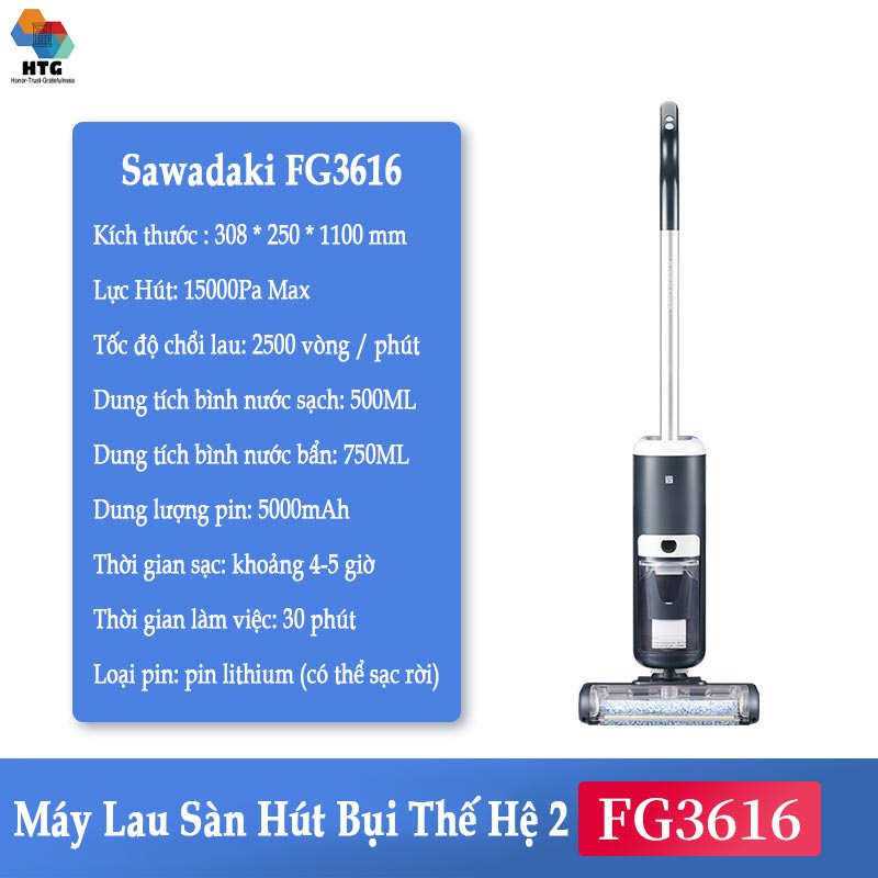 Máy lau nhà hút bụi Sawadaki FG3616 công nghệ mới 3 trong 1, tự động giặt giẻ 4s, nâng cấp lực hút 15000Pa, đa dạng sàn