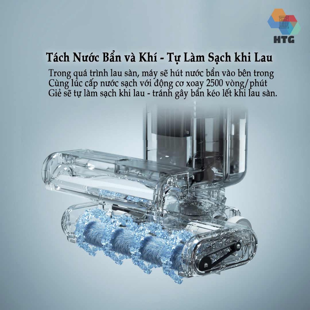 - Đẩy máy về phía muốn lau sàn nhà từ từ, máy sẽ tự hút và lau rất tiện lợi