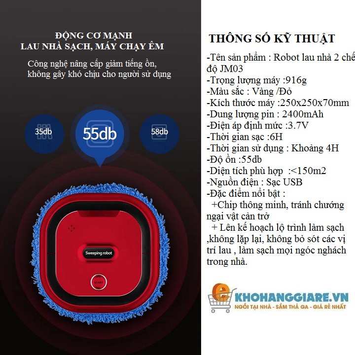 Thông tin sản phẩmTên: Robot lau nhà thông minh JM03
