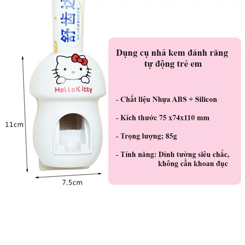 Máy lấy kem đánh răng tự động Hello kitty cho bé - Dụng cụ nhả kem đánh răng dán tường tiện lợi